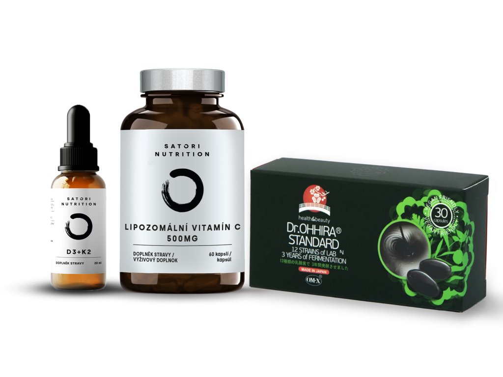 S příchodem zimy a chladných dnů, kdy naše tělo čelí zvýšené zátěži, častějšímu pobytu v teple a suchu z vytápění i vyššímu riziku sezónních infekcí, je důležité posílit přirozenou obranyschopnost organismu. Proto jsme si pro vás připravili zvýhodněný balíček Imunita se slevou 380 Kč, který kombinuje tři klíčové doplňky – OM-X® probiotika Dr. Ohhira® Standard, lipozomální vitamín C a vitamín D3 + K2 v MCT oleji. Společně zajišťují komplexní podporu imunity, energie i celkové vitality – právě v období, kdy ji tělo nejvíce potřebuje. Balíček Imunita je ideální volbou na zimu – pomáhá tělu zvládat zvýšenou zátěž, posiluje obranyschopnost, podporuje regeneraci a udržuje energii i psychickou rovnováhu v období, kdy to nejvíce potřebujeme.